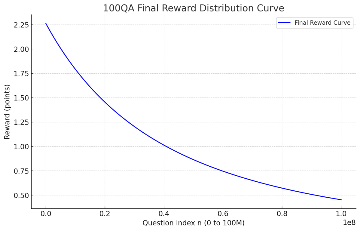 为了在早期吸引更多人参与100QA的建设,我们设置了奖励曲线,以保证早期参与者获得更多的奖励,